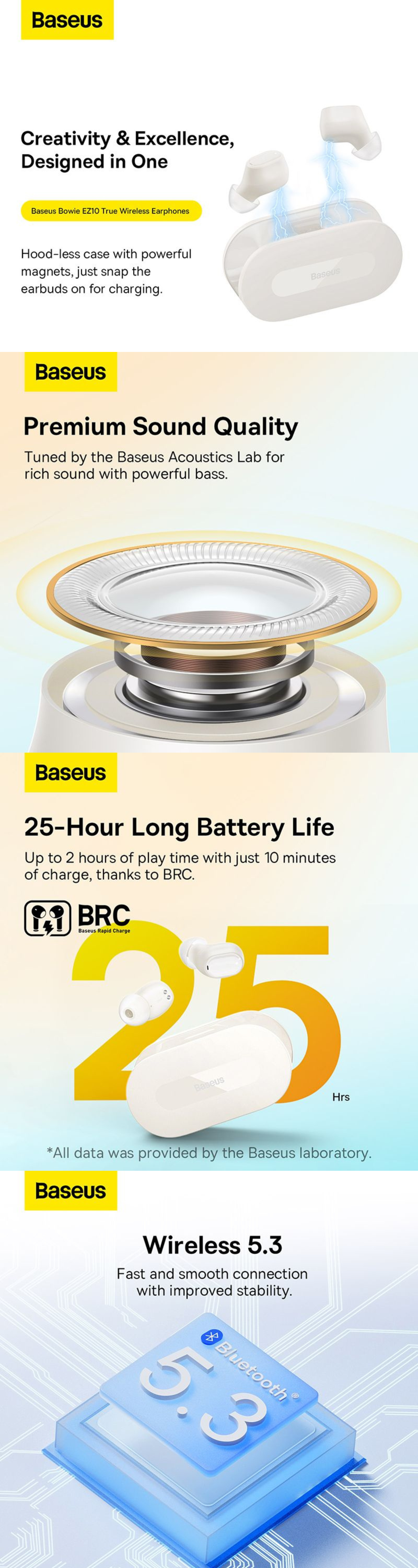Casti wireless Baseus Bowie EZ10, True Wireless, Bluetooth 5.3, Alb