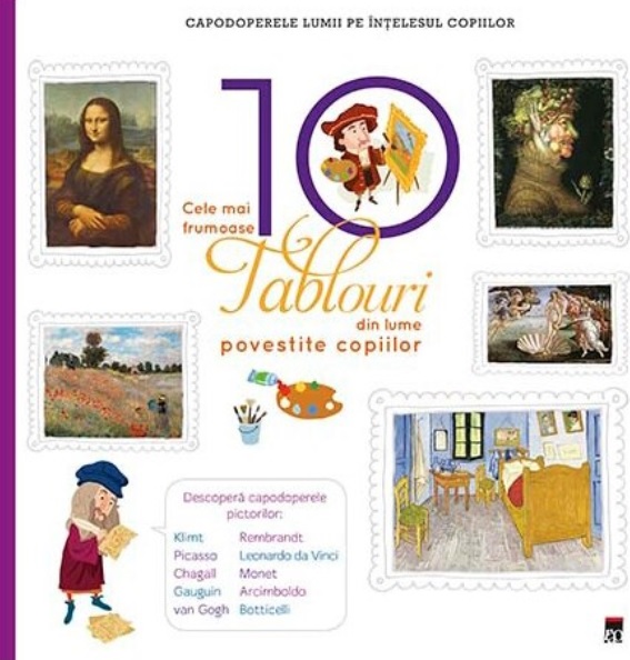 Lucrarea prezinta 10 tablouri din lume, reprezentative pentru istoria artei, fiecare cu o scurta prezentare, note biografice si informatii succinte pe intelesul copiilor. Datele sunt relatate pe scurt si ofera un minimum de detalii, dar extrem de concentrat, care scot in evidenta opera unui pictor, caracteristicile acesteia, scurte povestiri si intamplari legate de tabloul respectiv, precum si un episod de benzi desenate pe marginea picturii respective.Specificatii
