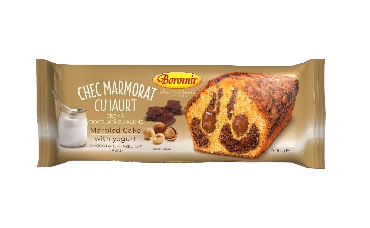 Chec Boromir Marmorat cu iaurt si crema ciocolata cu alune, 400g