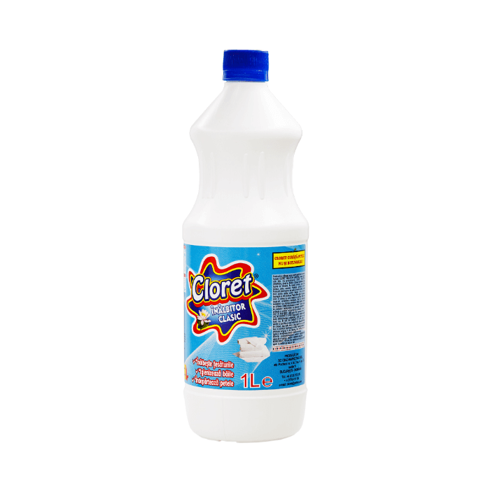 In caz de inghitire: Sunati imediat la un Centru de Informare Toxicologica/ un medic. Daca este necesara consultarea medicului, tineti la indemana recipientul sau eticheta produsului. Eliminati continutul/recipientul la un centru corespunzator de colectare a deseurilor. Nu utilizati pe rufe colorate, lana, matase si piele. A se utiliza, de preferinta, inainte de data inscriptionata pe ambalaj.