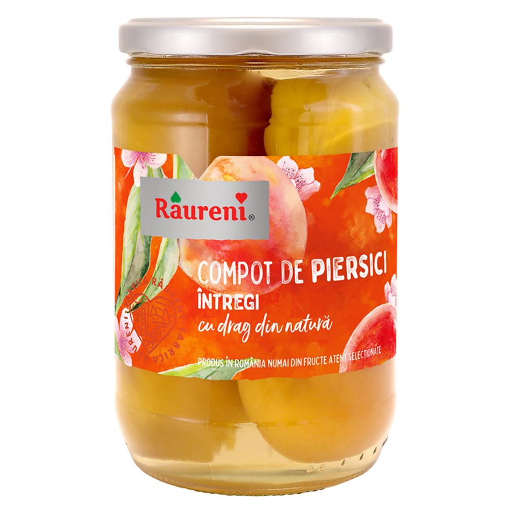 Compot piersici intregi 720 g, Raureni