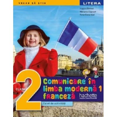 Caietul de activitati pentru disciplina Comunicare in limba moderna 1 franceza este elaborat pe baza colaborarii editurilor Hachette si Litera. Este un instrument de lucru pe cat de util pe atat de atractiv care ofera scolarilor sansa de a se familiariza cu primele notiuni de limba franceza intr-o maniera ludica si intuitiva. Caietul poate fi folosit indiferent de manualul utilizat la clasa constituind un excelent suport adresat elevilor si cadrelor didactice din invatamantul primar. In paginile acestui caiet elevii vor gasi trimiteri la inregistrari audio esentiale in invatarea unei limbi straine si in dezvoltarea receptarii mesajelor orale doua recapitulari intermediare si o recapitulare finala o pagina de proiect la finalul fiecarei unitati prin intermediul careia sunt verificate notiunile invatate.Specificatii