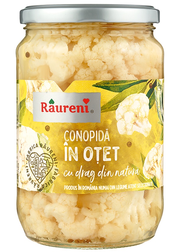 Ingrediente: Conopidă, apă, oţet din vin alb, sare, zahăr, foi de dafin, coriandru, piper.