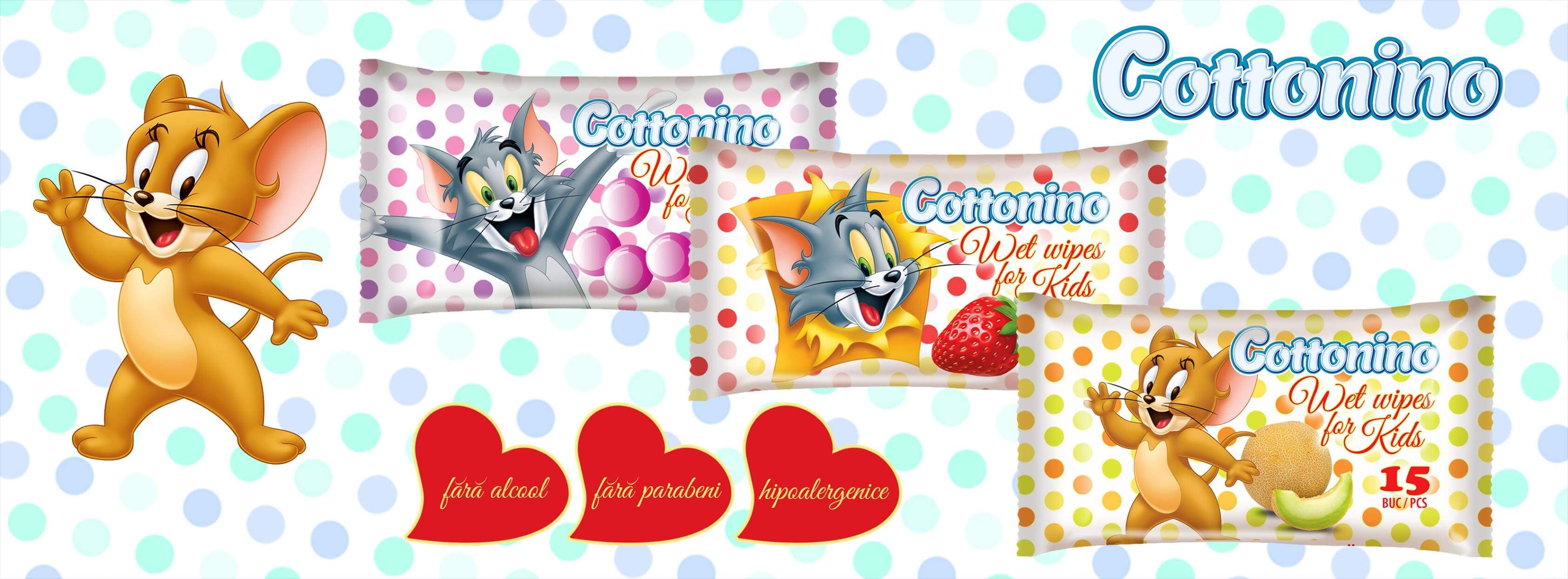 Cottonino Tom and Jerry Servetele umede pentru copii Melon, 15 buc