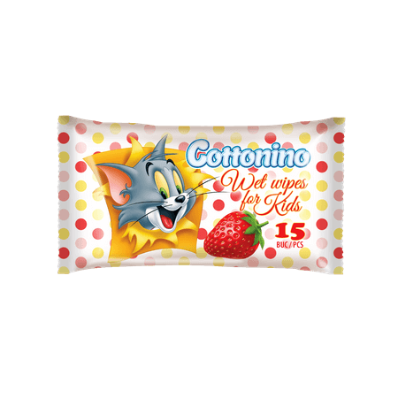 Cottonino Tom and Jerry Servetele umede pentru copii Strawberry, 15 buc