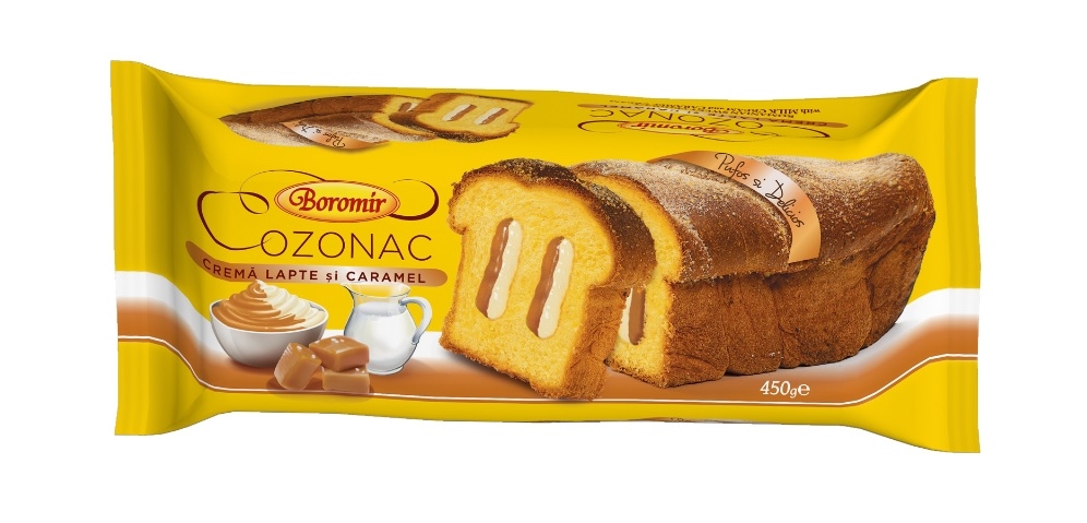 Feliile de cozonac sunt decorative, având fâșii de cremă colorată de caramel, iar aspectul deosebit e completat de gust.Chiar și cei mai pretențioși musafiri vor aprecia calitatea cozonacului cu crema caramel si lapte de la Boromir. Îl puteți servi simplu, cu lapte, alături de cafea sau ceai aromat.