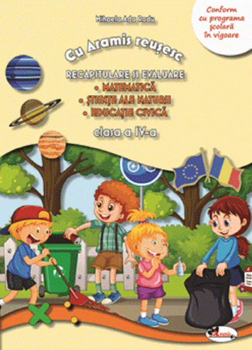 Caietul pentru clasa a IV-a, Cu Aramis reusesc – recapitulare si evaluare la matematica, stiinte ale naturii si educatie civica, contine fise de antrenament si autoevaluari cu ajutorul carora elevii vor putea, de multe ori singuri, sa-si reaminteasca si sa-si fixeze notiunile de baza asimilate, pe parcursul clasei a IV-a, la disciplinele Matematica, Stiinte ale naturii si Educatie civica. In paginile acestui caiet se regasesc: situatii de viata, informatii din alte domenii transpuse in exercitii de matematica, experimente, activitati in echipa, linkuri si provocari. Acestea sunt doar cateva dintre elementele care stimuleaza elevul in acest caiet, toate facilitand intregul proces de recapitulare, consolidare si autoevaluare.