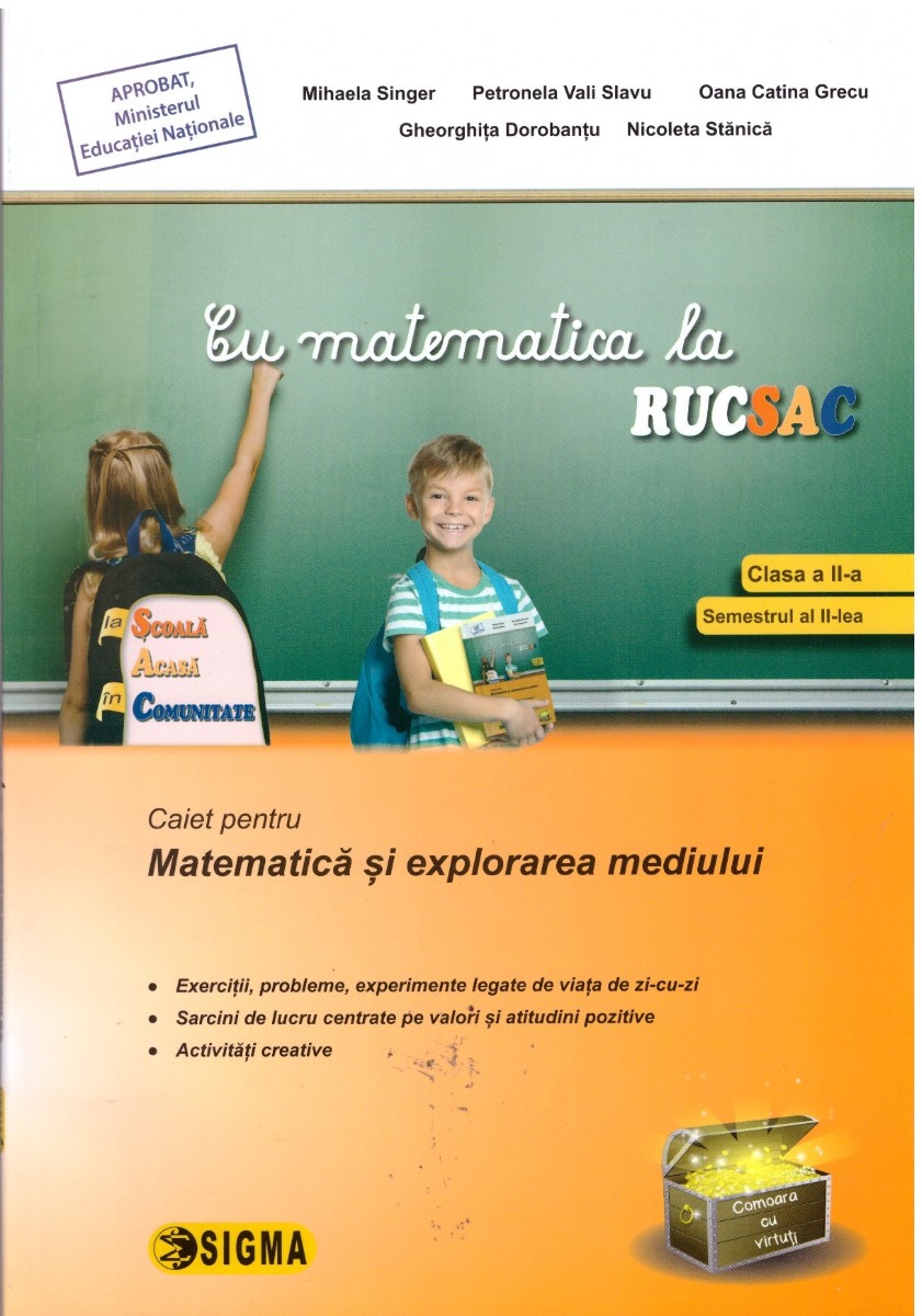 Cu matematica la RUCSAC, Caiet pentru Matematica si explorarea mediului, clasa a II-a, semestrul al II-lea - Mihaela Singer, Petronela Vali Slavu, Oana Catina Grecu, Gheorghita Dorobantu, Nicoleta Stanica