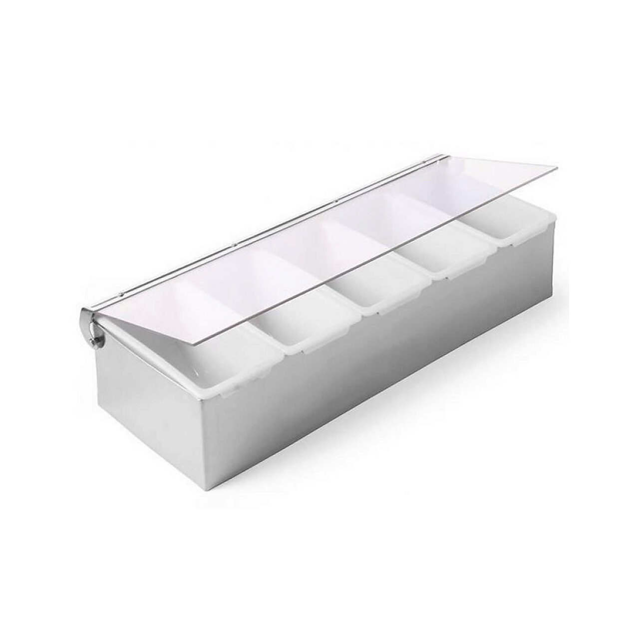 Cutie ingrediente bar / pizza, 5 compartimente, 375x140x(H)90 mm, capac transparent, Hendi