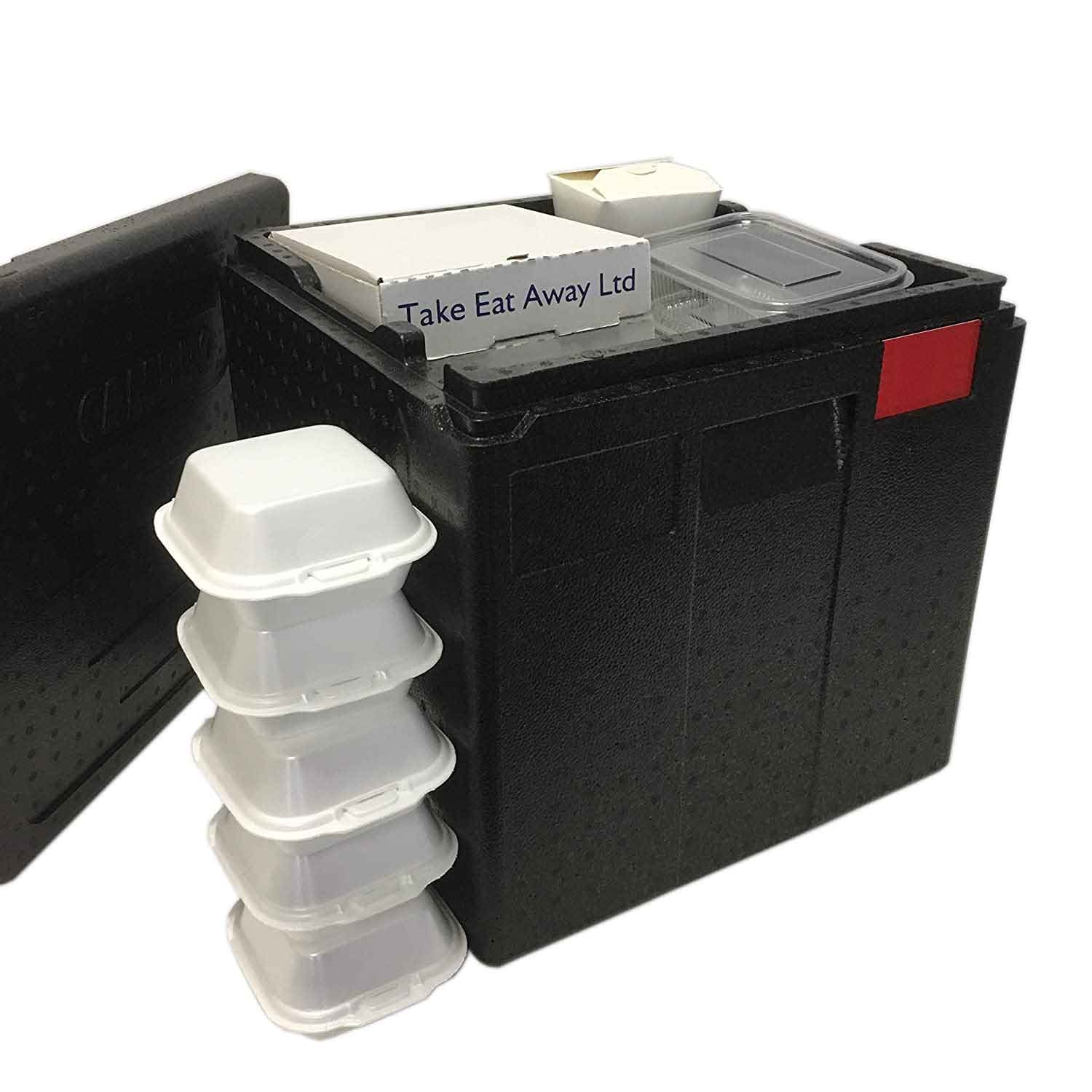 Cutie izotermica cu capac -capacitate 8 pizza (cutie cu dimensiunile 330x330x40hmm), culoare neagra, material EPP -spuma de polipropilena extrem de usoara, ECO friendly si izolare de inalta performanta -> stabil din punct de vedere chimic la actiunea altor factori organici (ulei, grasime, chimicale), excelenta putere de absorbtie la socuri, poate sustine greutati substantiale fara a se deforma, respecta normele privind siguranta materialelor in contact cu alimentele, 100% material reciclabil, lavabila in masina de spalat vase, dimensiuni interne 350x350x330hmm, dimensiuni externe 410x410x404hmm, greutate 1.23kgSpecificatii