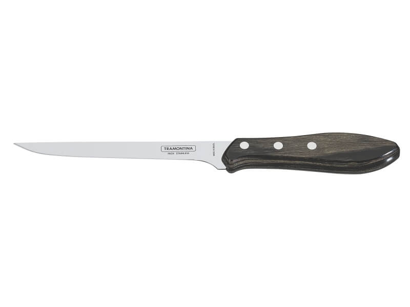 Cutit filetat gama POLYWOOD 152mm, lama din inox de foarte buna calitate, isi mentine stralucirea dupa o utilizare indelungata, lungime lama 152mm, maner fabricat din lemn tratat, textura fina, nuanta lemn de nuc, rezistent la temperaturi inalte si impact, se poate curata in masina de spalat vase, ambalat in blister