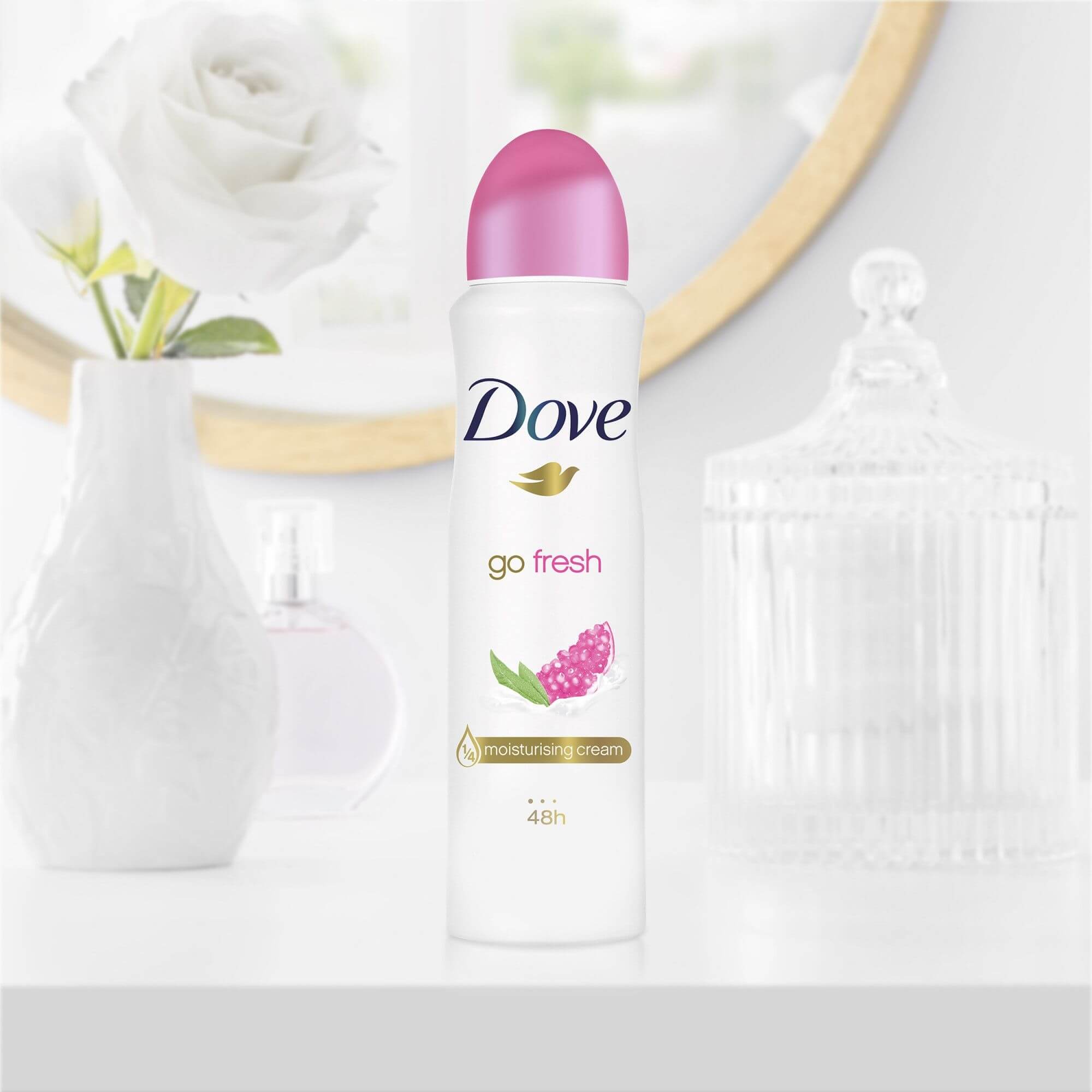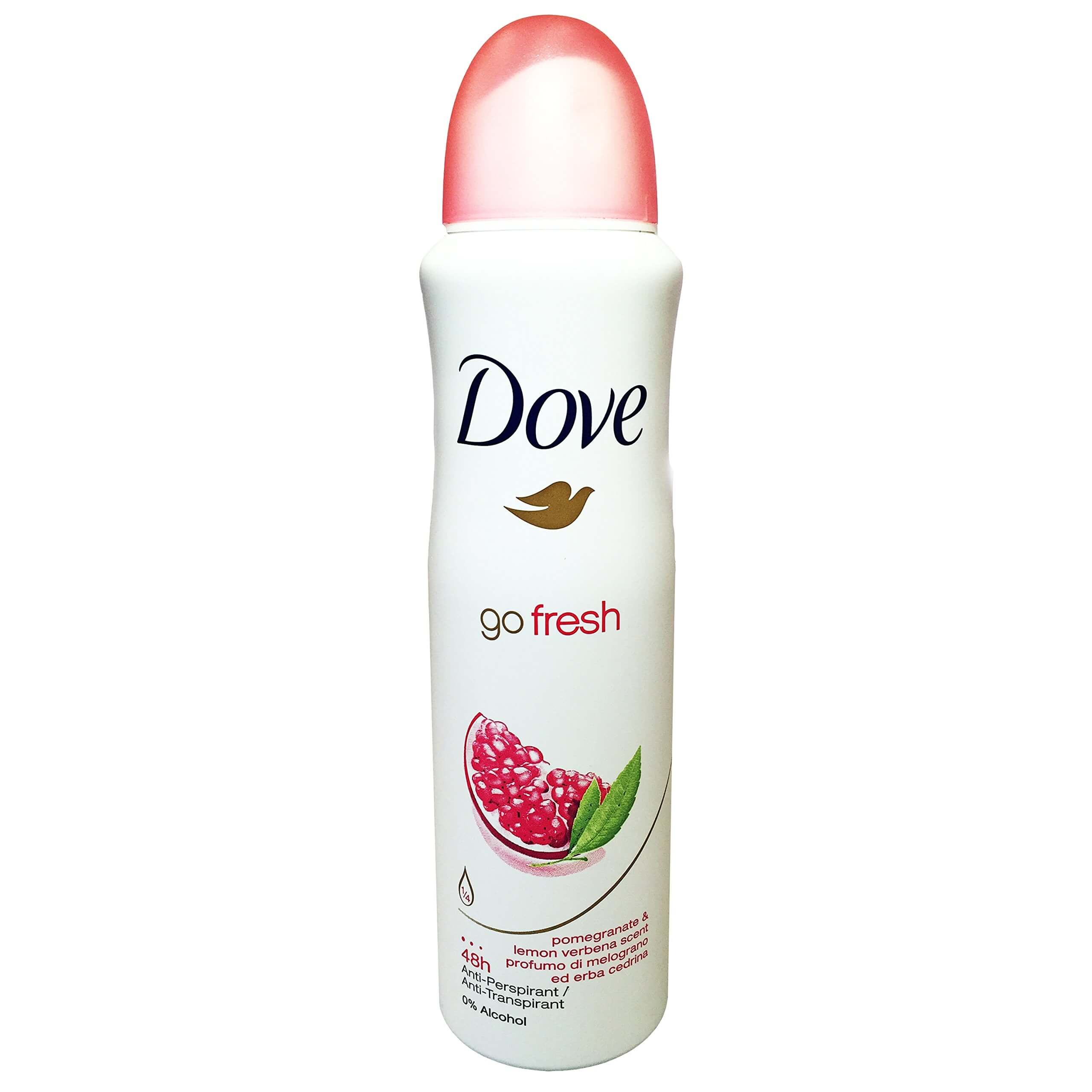 Dove GoFresh Pomegranate & Lemon Verbena iti ofera 48 de ore de protectie eficienta impotriva transpiratiei, dar si o senzatie placuta de prospetime, gratie parfumului de rodie si lamaita si notelor de pepene, piersica, ananas si pruna.