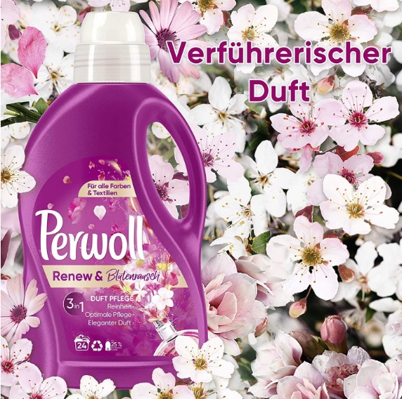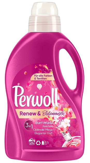 - Detergentul lichid Perwoll Renew & Blossom curata toate tipurile de haine, ingrijeste tesaturile si ofera un parfum floral, elegant;