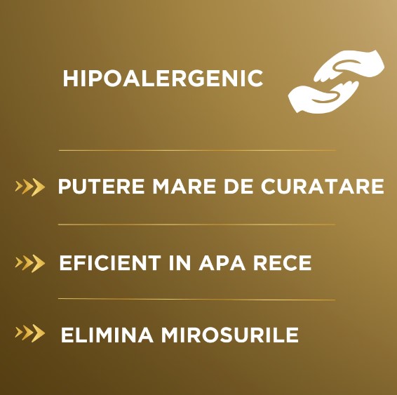 - Formula sa cu activi igienizanti naturali, elimina petele si mirosurile neplacute persistente