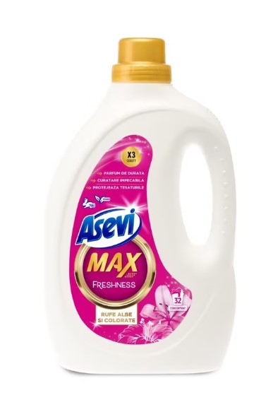 ASEVI MAX FRESHNESS este un detergent concentrat, care este eficient chiar si in apa rece. Este potrivit pentru toate tipurile de tesaturi, inclusiv cele colorate.