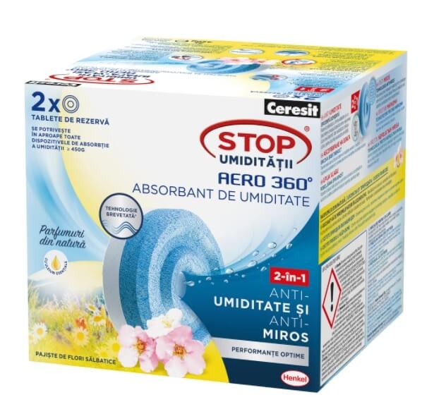 Dezumidificator rezerva absorbant umiditate Aero 360°, pajiste de flori salbatice, 2 buc Ceresit