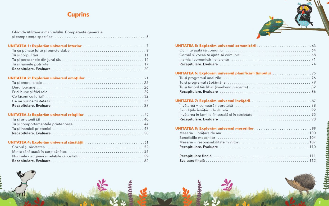 1. Manualul propune activitati variate care invita la reflectie si auto-reflectie, cunoastere, autocunoastere si intercunoastere. Lectiile extind orizonturile copiilor pentru o mai buna intelegere de sine.
