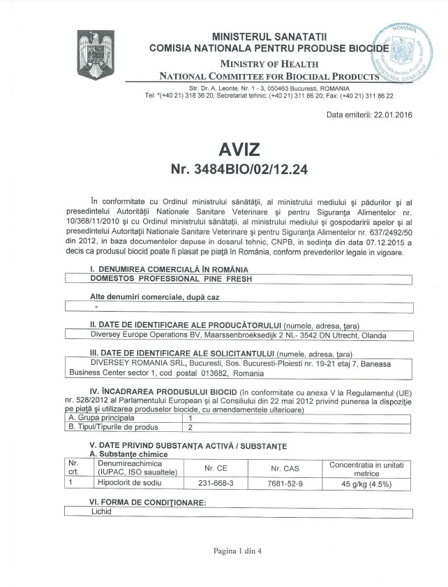 Este un detergent dezinfectant lichid conceput pentru igienizarea regulata a suprafetelor lavabile. Poate fi utilizat sub forma concentrata (pentru toaleta, canale de scurgere), sau diluat (pentru pardoseli, faianta, obiecte sanitare si alte suprafete lavabile).