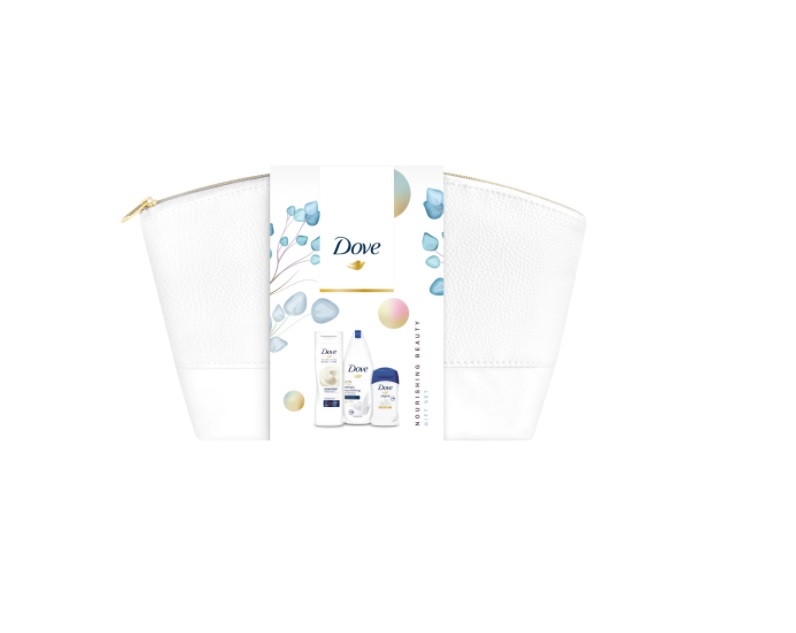 Dove Set cadou geanta de machiaje Gel de dus 250ml, lapte de corp 250 ml si deodorant 40 ml