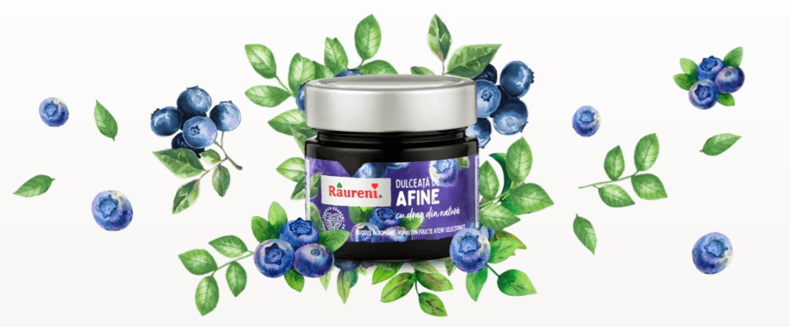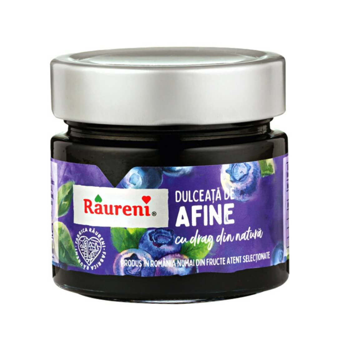 Raureni propune o delicatesă - dulceaţa de afine. Această dulceață oferă o culoare intensa de fructe rosii, deosebita. Ai ocazia sa savurezi un gust acrisor si delicat de fructe de padure, cu bobite aproape intregi, o minune dulce care place tuturor.