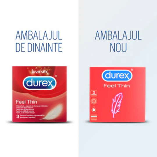 Cauti un prezervativ mai subtire? Pentru o apropiere profunda si un contact fizic real, intens, prezervativul subtire este cea mai buna alegere. Incearca prezervativul Durex Feel Thin, care asigura acelasi nivel inalt de siguranta si protectie, se aplica mai usor si ofera un confort sporit in timpul actului sexual. Datorita modalitatii de productie a prezervativelor Durex Feel Thin, acestea au un miros mai placut, astfel ca nimic nu iti va distrage atentia, deci relaxeaza-te pur si simplu si bucura-te din plin!