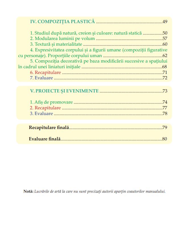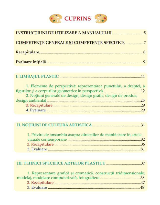 | Materia scolara | Educatie plastica |