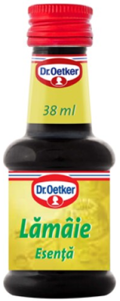 Esenta naturala de lamaie Dr. Oetker ofera prajiturilor si deserturilor gust si aroma proaspata de lamaie care se pastreaza si dupa coacere. Ambalata in sticlute de 38 ml este usor de dozat si de pastrat. O lingurita este suficienta pentru 500 g faina sau 500 ml lichid.