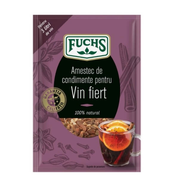 Condimentul Fuchs pentru Vin fiert este preparat dupa o reteta proprie, pentru a oferi o savoare si aroma deosebita vinului fiert.