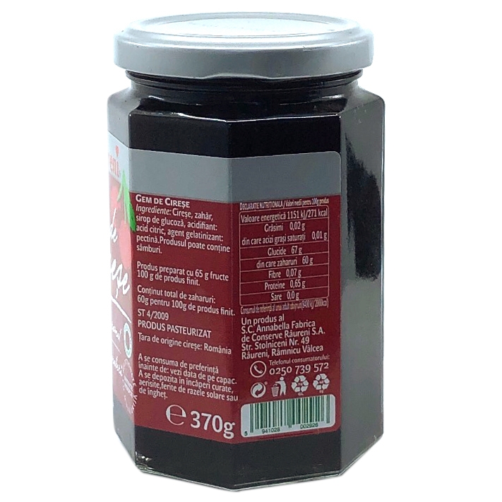 Ingrediente: Cirese, zahar, sirop de glucoza, acidifiant: acid citric, agent gelifiant: pectina.