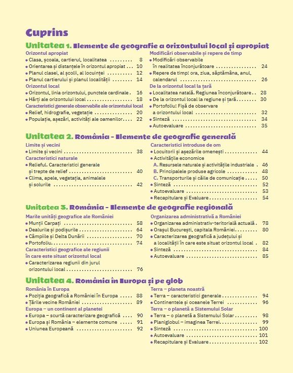 Lucrarea a fost avizata de Ministerul Educatiei in sesiunea iunie- august 2021. Lucrare in conformitate cu programa scolara in vigoare pentru disciplina Geografie clasa a IV-a aprobata cu Ordinul Ministrului Educatiei si Cercetarii Stiintifice nr. 5003 02. 12. 2014.Specificatii