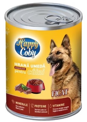 Hrana umeda pentru caini, gust de ficat, 415g Happy Coby
