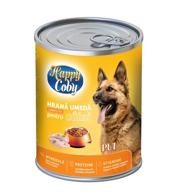 Hrana umeda pentru caini, gust de pui, 415g Happy Coby