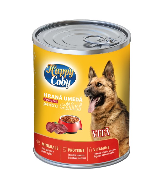 Hrana umeda pentru caini, gust de vita, 415g Happy Coby