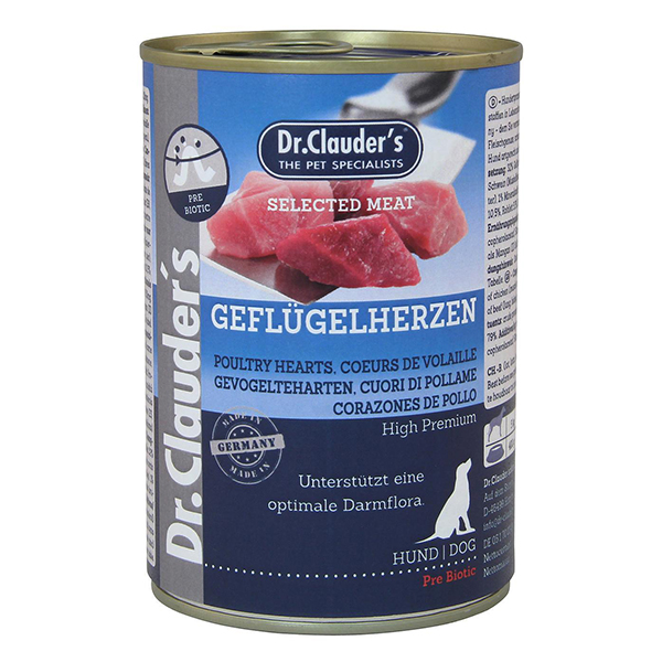 Hrana umeda, Caini, 400 g, cu Inimi de pui, Dr. Clauder`s Selected Meat