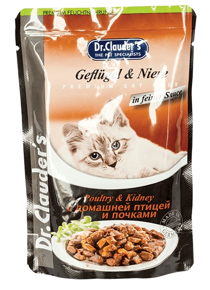 Hrana umeda pentru pisici, Pasare de curte si rinichi intr-un sos delicat, 100 g, Dr. Clauder’s