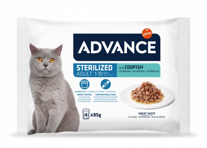 ADVANCE Wet este facuta cu ingrediente de inalta calitate, gatite la abur pentru ca tu sa-i poti oferi pisicii tale adulte sterilizate bucatele gustoase intr-un sos delicios.