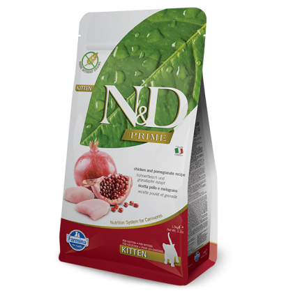 N&D Prime Kitten cu Pui si Rodie, 1.5 Kg este o hrana completa super premium pentru puii de pisica. Aceasta hrana este recomandata si pisicilor gestante sau care alapteaza