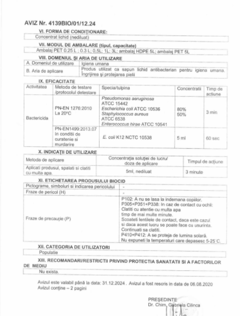 | Beneficii | Dezinfectant |