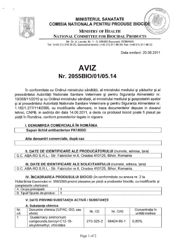 Sapun lichid antibacterian pentru spalarea mainilor in mediu profesional si casnic