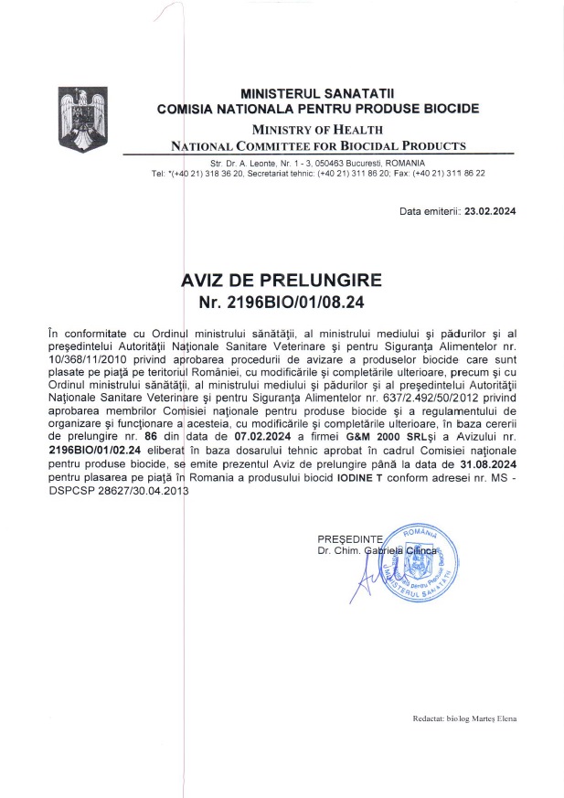 | Beneficii | Dezinfectant |