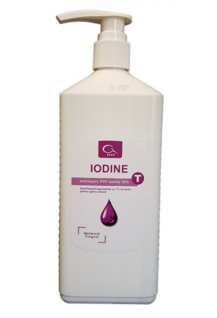 Produsul antiseptic pe baza de iod, IODINE T se foloseste ca atare pe piele prin stergere sau pentru pansamente, timp de actiune 1 minut.