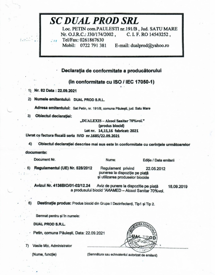 Alcoolul sanitar Dualexis poate dezinfecta si poate elimina bacteriile si microbii de pe suprafata pielii sau a altor obiecte din casa.