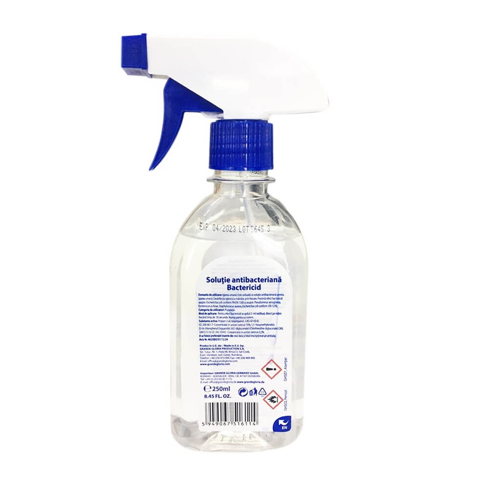 Domeniu de utilizare: Igiena umana. Este utilizata ca solutie dezinfectanta pentru igiena umana. Dezinfectia igienica a mainilor prin frecare. Prezinta efect bactericid asupra E coli conform PN EN 1500 si a multor altora.