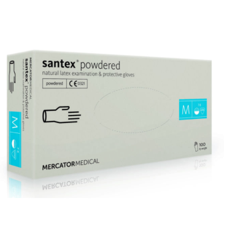 Manusi latex pudrate pentru examinarea pacientilor din unitatile sanitare si cabinete medicale.