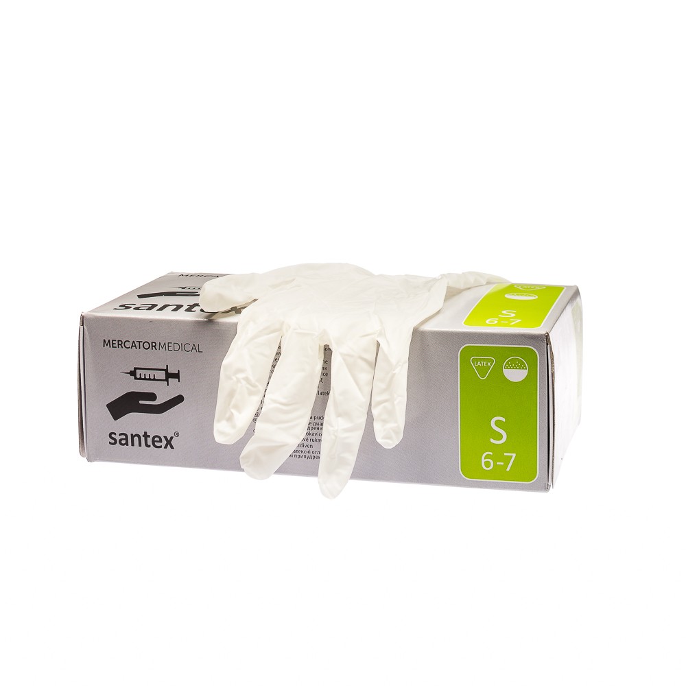 Manusi unica folosinta latex pudrate marimea S albe 100buc, Mercator