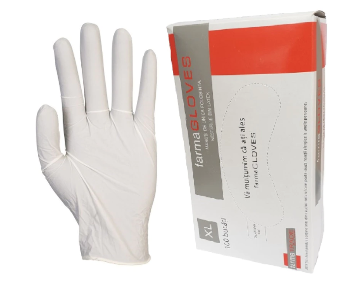 Manusi unica folosinta latex pudrate marimea XL albe, 100buc farmaTrade