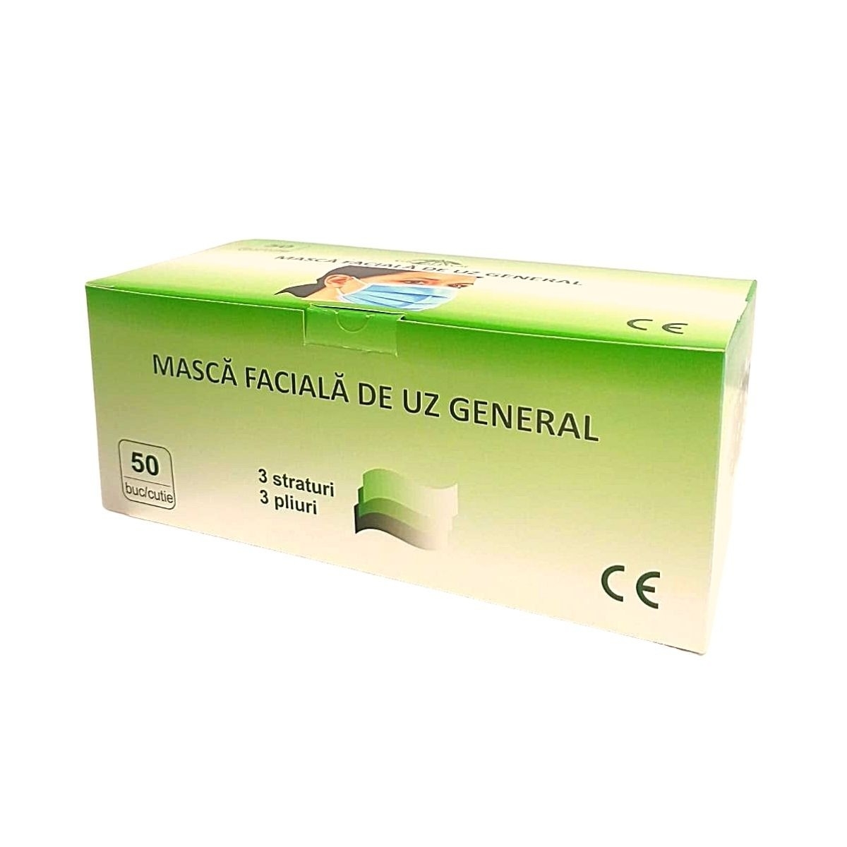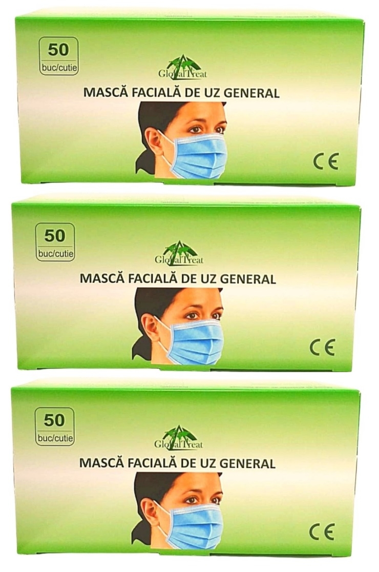 Produsul este fabricat in Romania! Global Masti de uz general cu elastic, albastre 3 straturi, 50 de bucati - 3 cutii