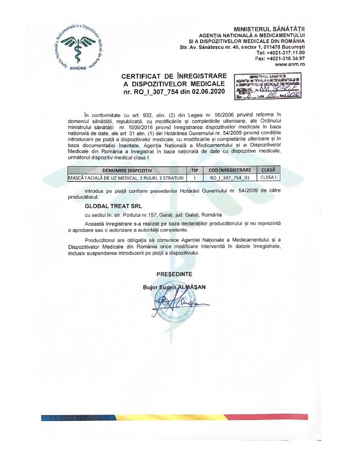 Masca este de unica folosinta. Nu reutilizati!