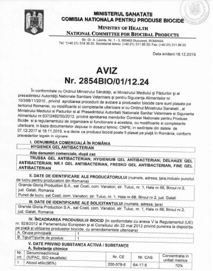 TP1: Produsele din această categorie sunt produse biocide utilizate pentru igiena umană, aplicate pe sau care intră în contact cu pielea umană sau cu pielea capului în scopul principal de a dezinfecta pielea sau pielea capului.