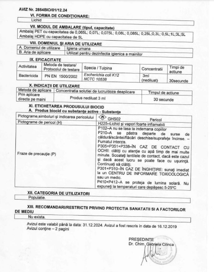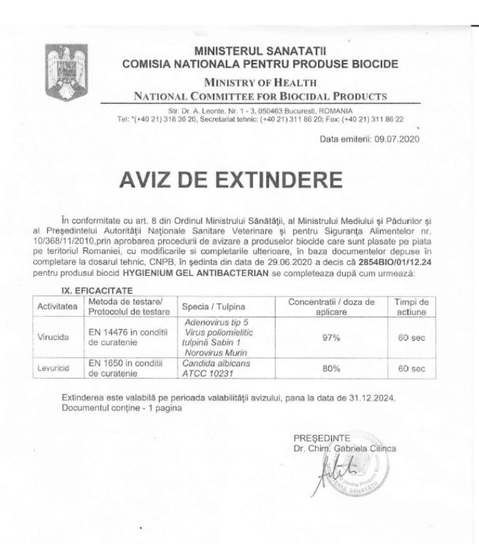 | Beneficii | Dezinfectant |